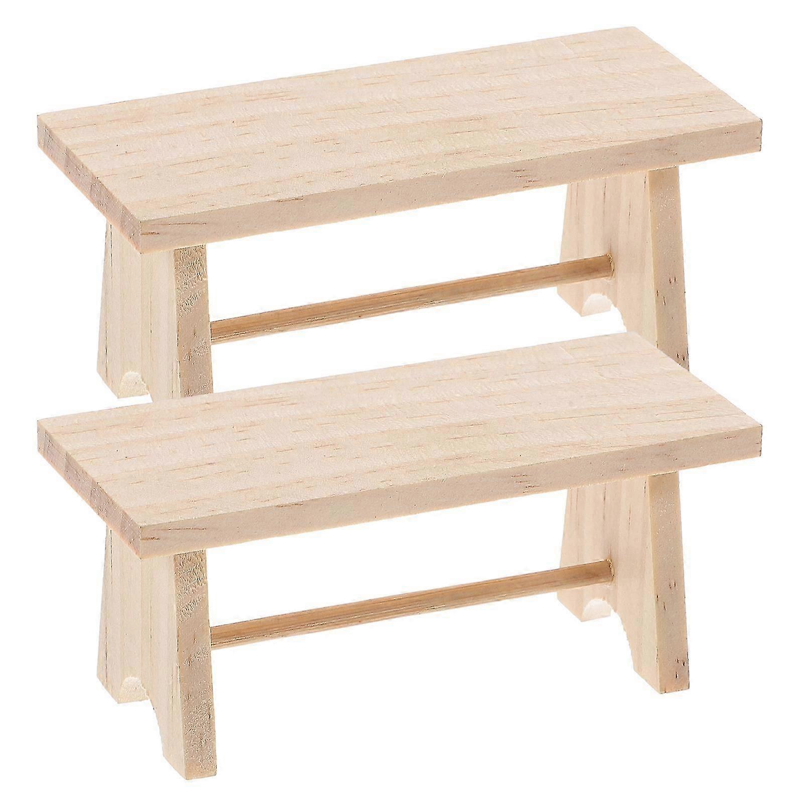 2Pcs Mini House Table Decor Mini Furniture Model Wooden Simulation Tea Table Model