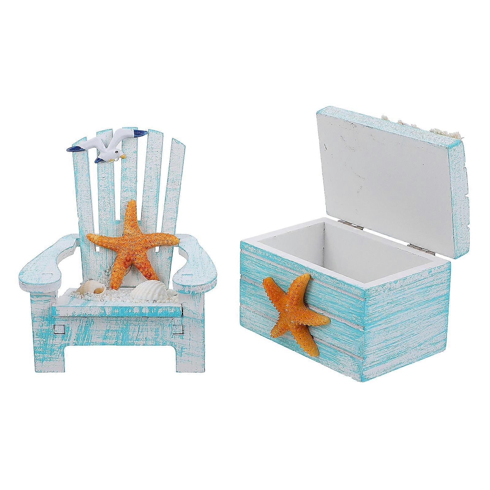 2pcs Mini Beach Chair Ornament Mediterranean Style Wooden Box Adornments for Ocean Themed Home Decor Living Room Kitchen Cafe Nautical Furniture