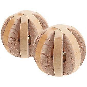 2pcs Ball Shaped Hamster Chew Toy Natural Wooden Rabbit Molar Toy Guinea Pig Chew Toy with Bell