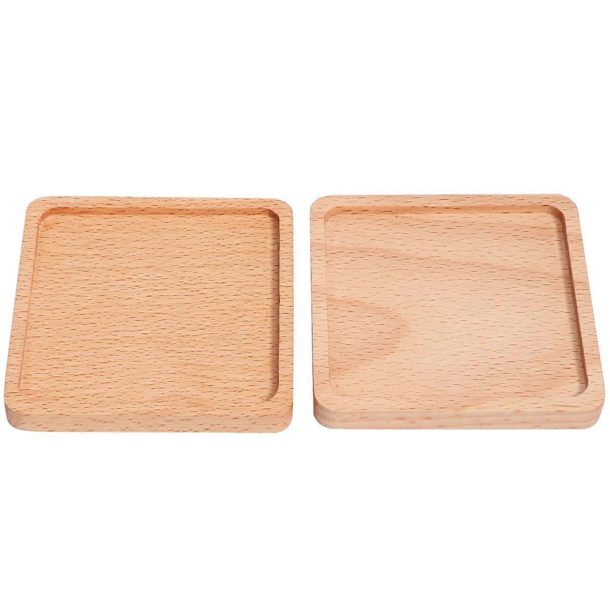 2pcs Wooden Coaster Japanese Style Non-slip Cup Mat Heat Insulation Pad for Home Restraurant Hotel (Beech Outside Square and Inside Groove)