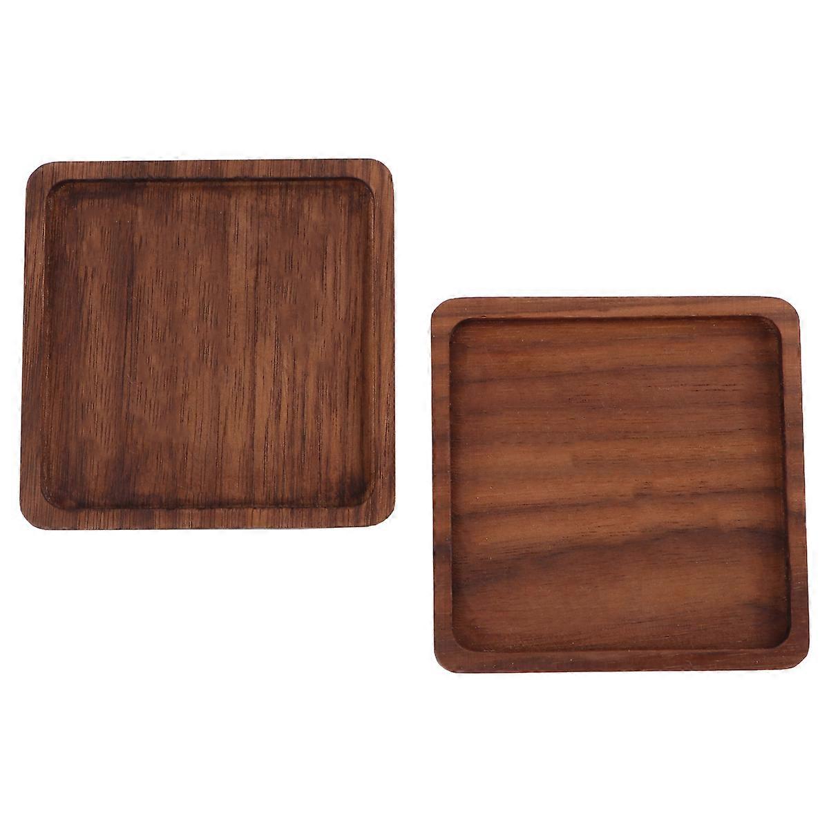 2pcs Wooden Coaster Japanese Style Non-slip Cup Mat Heat Insulation Pad for Home Restraurant Hotel (Walnut Wood Square Shape Groove)