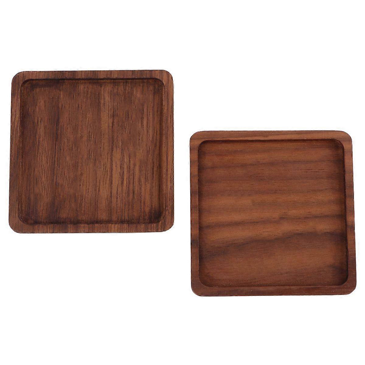 2pcs Wooden Coaster Japanese Style Non-slip Cup Mat Heat Insulation Pad for Home Restraurant Hotel (Walnut Wood Square Shape Groove)