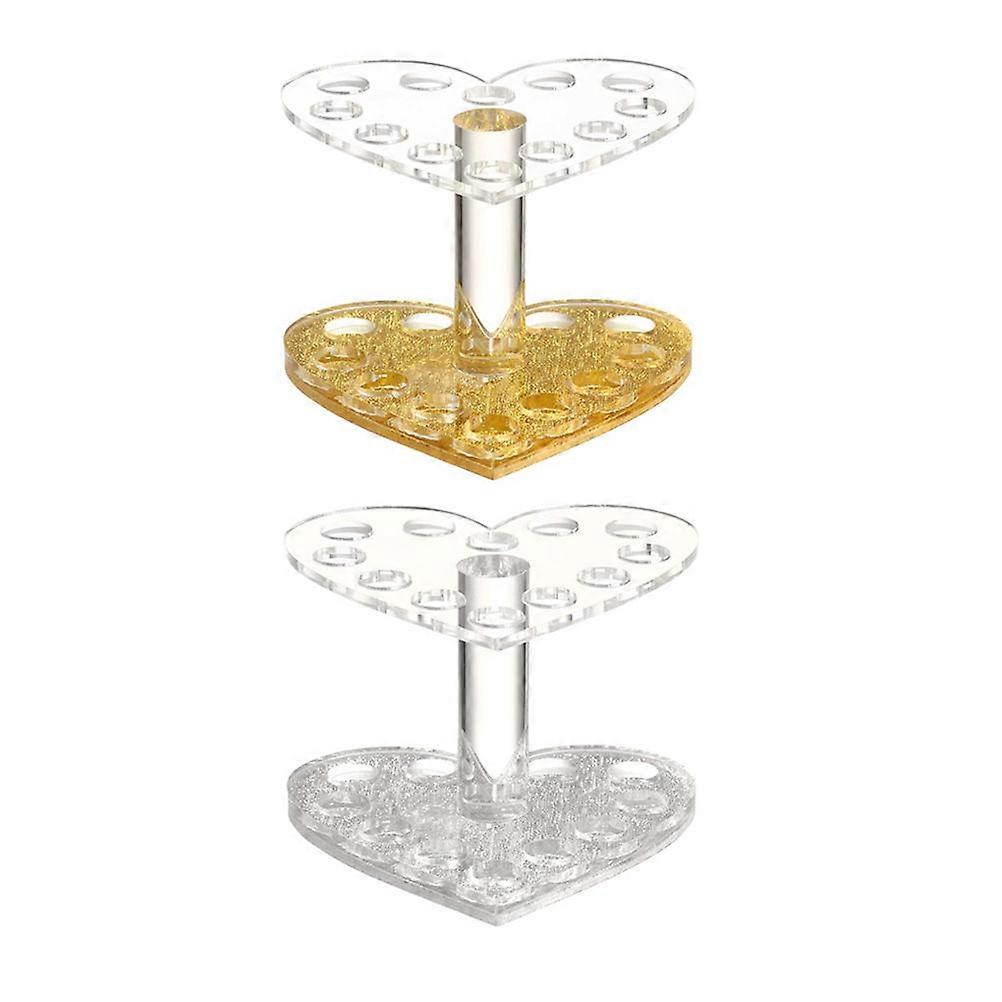 2pcs Heart Shaped Acrylic Makeup Brush Storage Organizer for Bathroom Desktop (Random Color)