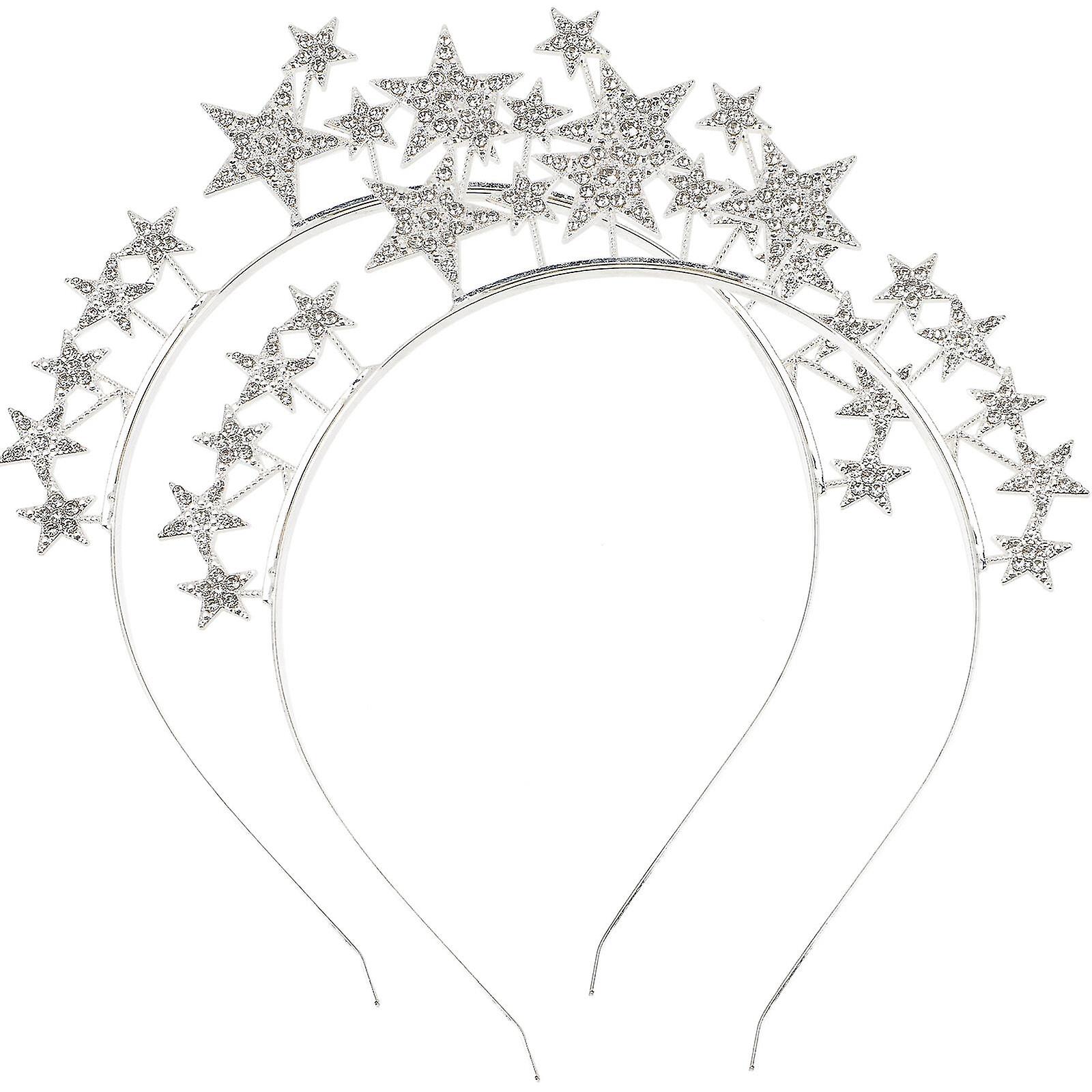 2pcs Kids Pentagram Shaped Metal Hair Hoops Glitter Hair Ornament Star Headbands