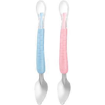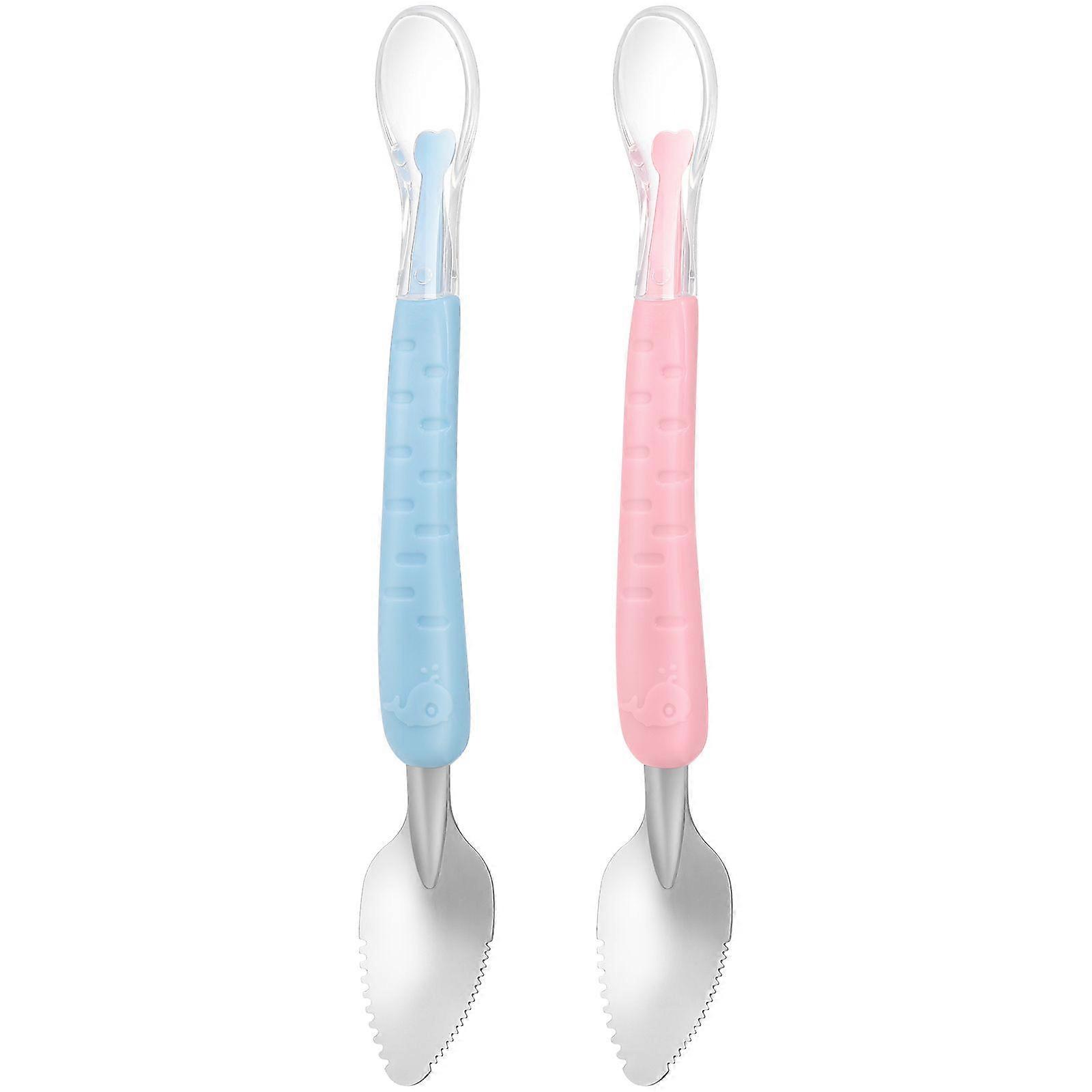 2pcs Kids Double-headed Spoon Silicone Handle Fruit Puree Spoon Eating Tool