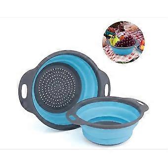 2PCS Foldable Colander-Foldable Drain Strainer Silicone Foldable Pasta - Blue