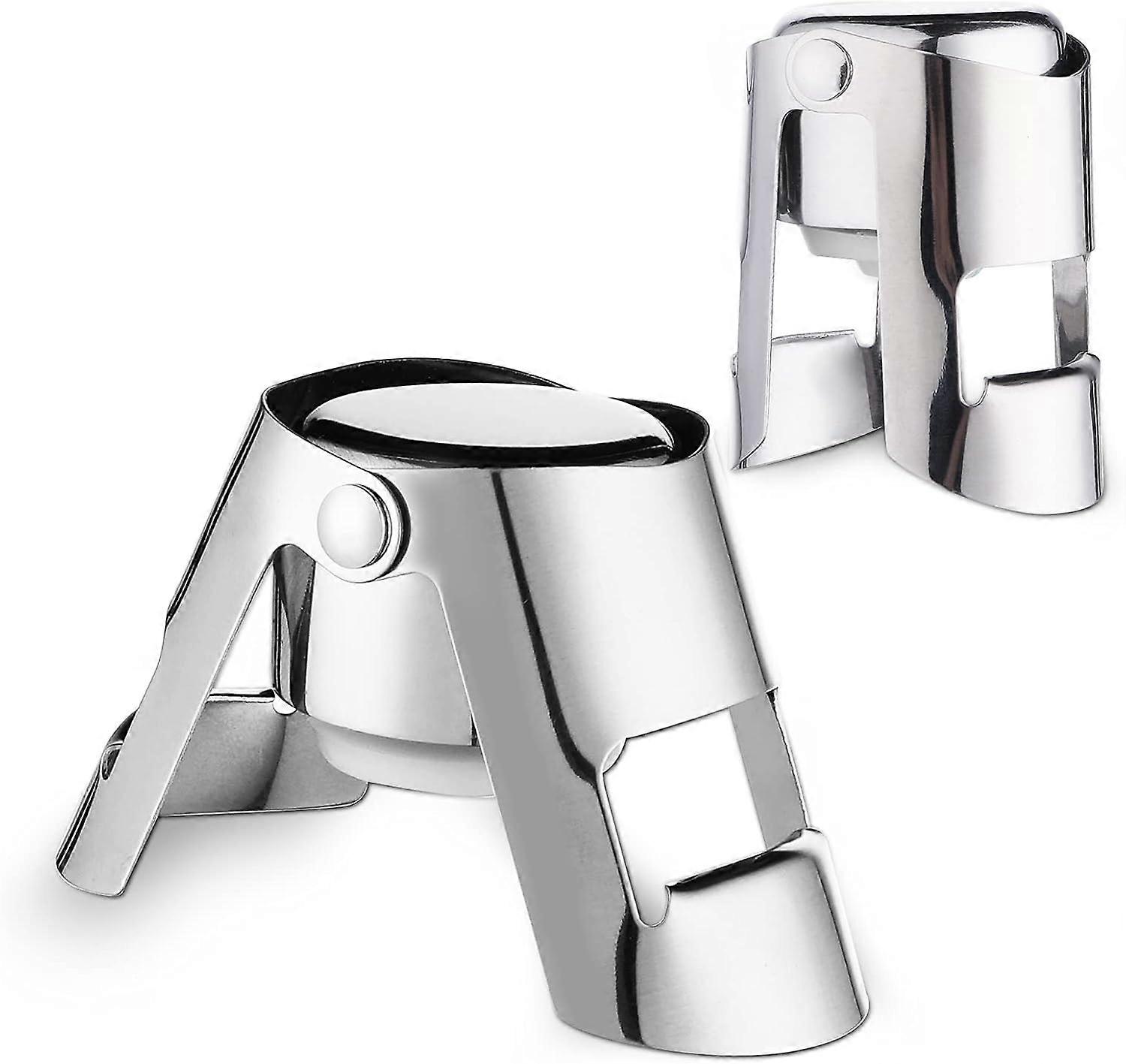 2Pcs Champagne Stoppers Stainless Steel Wine Stopper Vacuum Sealed Bottle Stoppers Sparkling Wine Saver