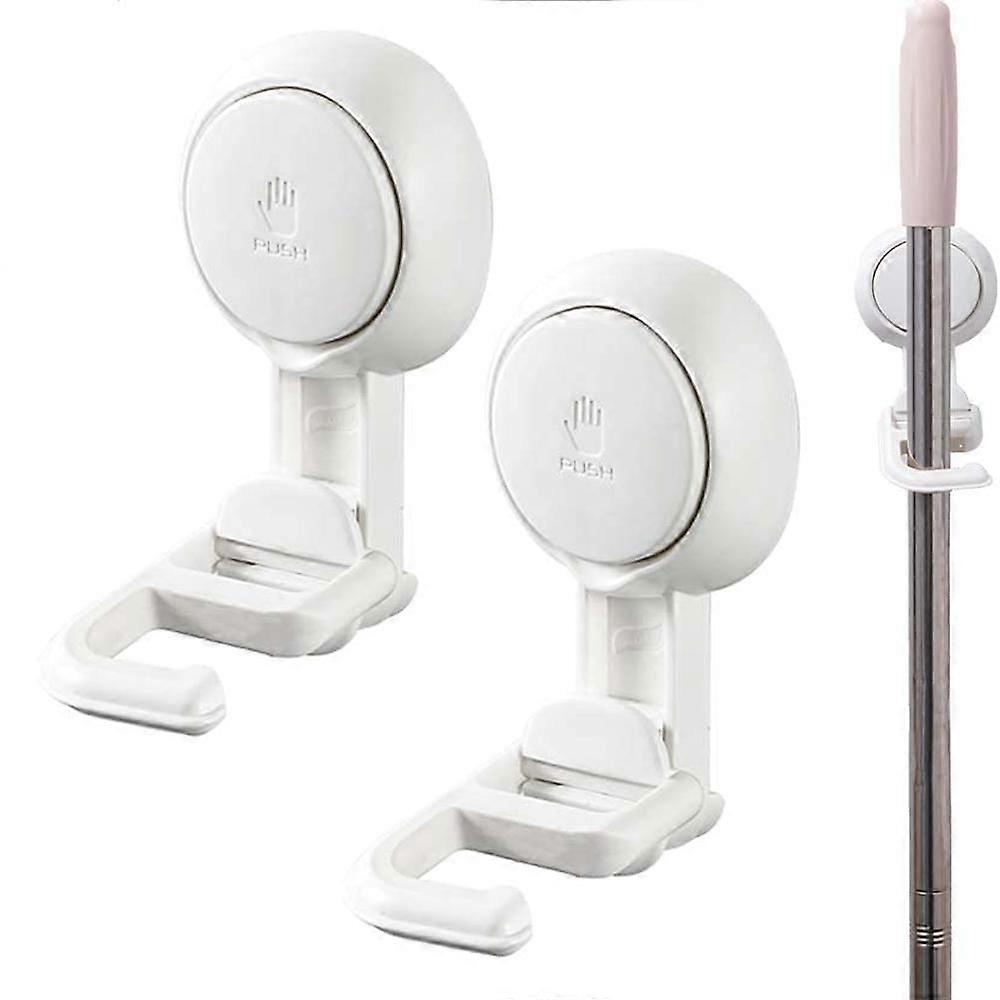 2PCS Mop Broom Holder Wall Mount Removable Drill-Free with Suction Cup Bathroom Kitchen, Mop hook free punching rack bathroom storage suction cup stro