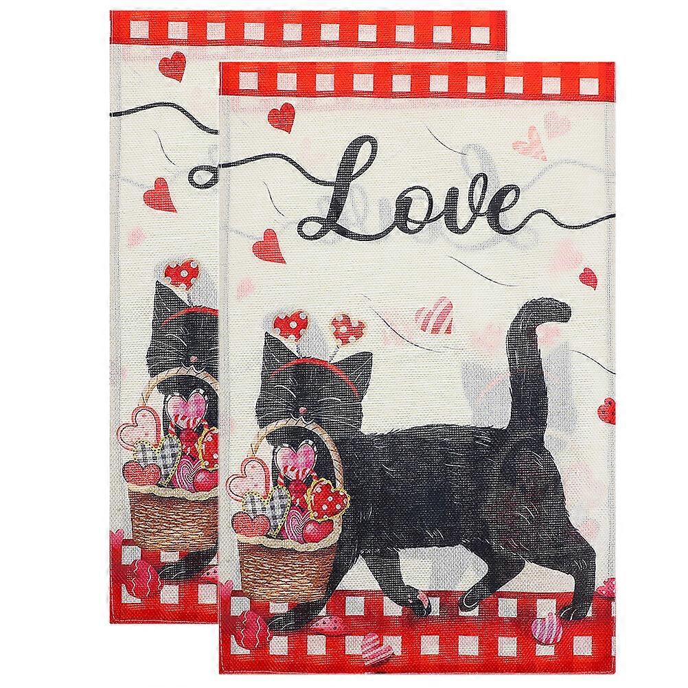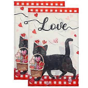 2pcs Outdoor Garden Valentine Flag Valentine Themed Linen Yard Flag Linen Yard Decoration Flag