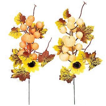 2Pcs Autumn Maple Leaf Branches Pumpkin Plant Adorns Flower Arrangement Decors