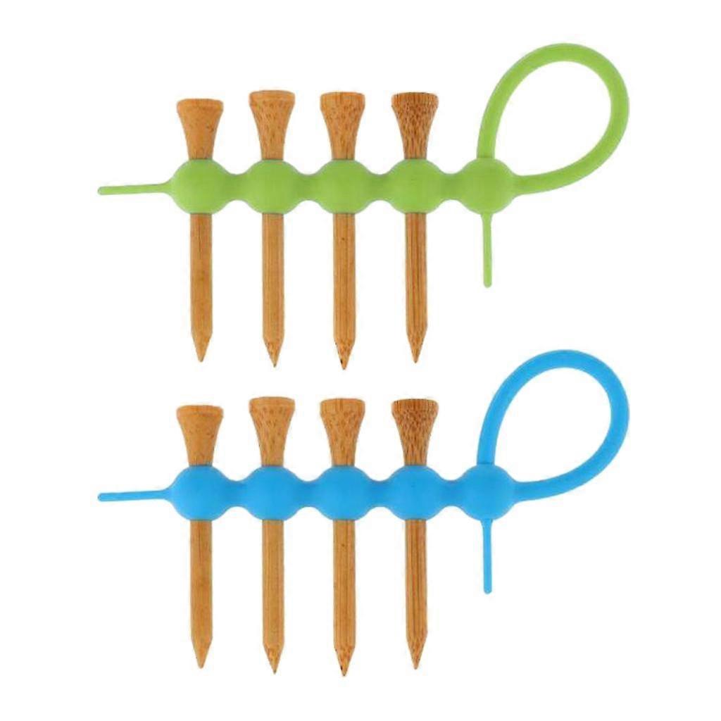 2pcs Portable Golf Tee Holder with 8pcs Wood Golf Tees (Green + Blue)