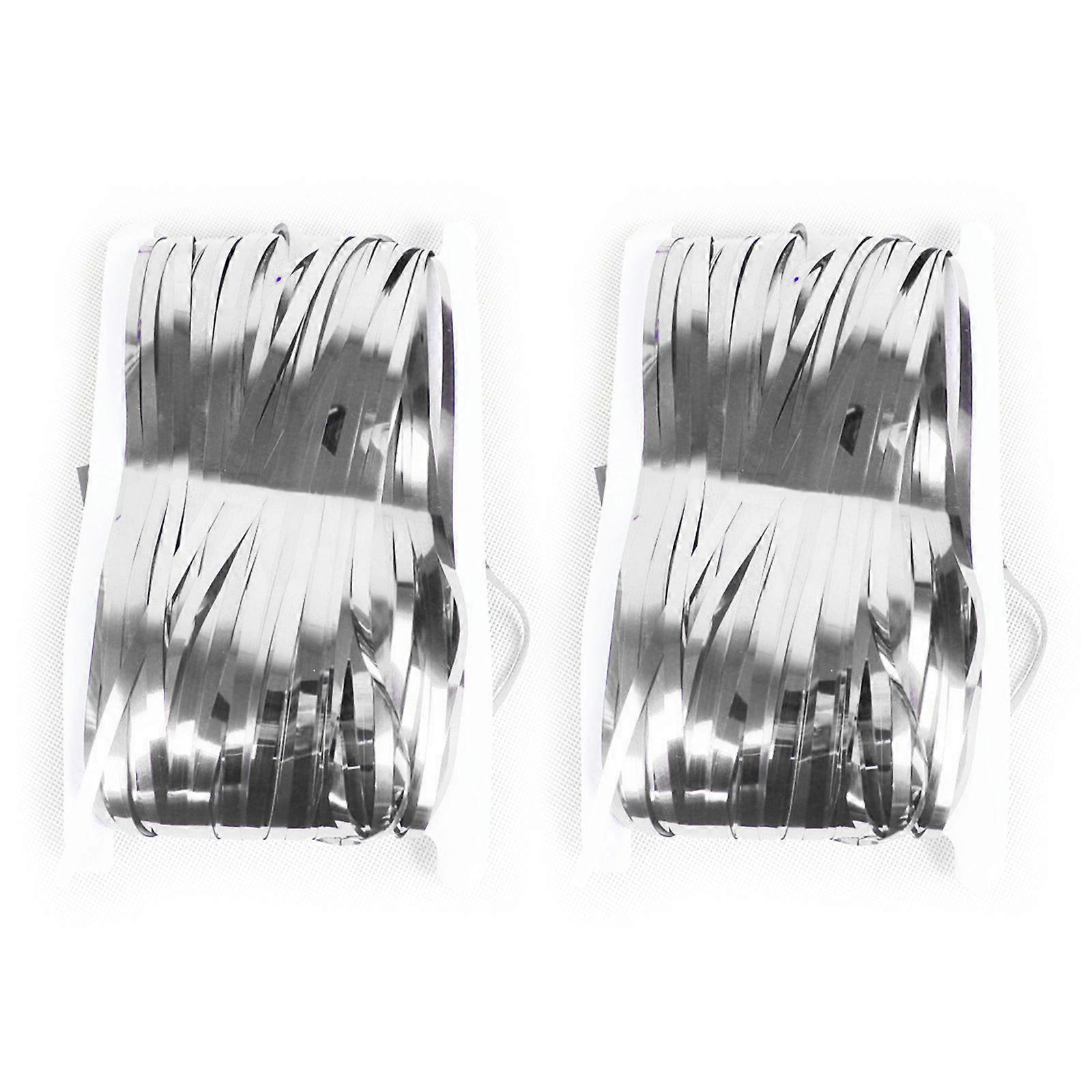 2Pcs Foil Fringes Backdrops Party Decoration 3.28x6.56ft Metallic Tinsel Photo Backdrop Curtains For Wedding Birthday Silver 1m by 2m