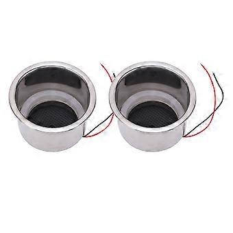 2PCS Luminous Cup Holder Insert 8 LEDs 304 Stainless Steel with Draining Hole for Marine Boat CarRed LED YEMAA