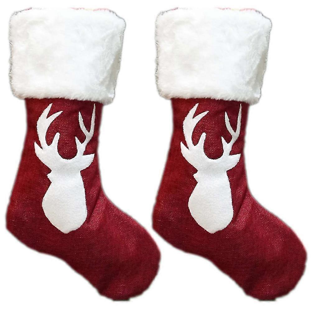 2pcs Christmas Stockings, Plush Cuff Stockings, For Family Holiday Xmas Party Decorations