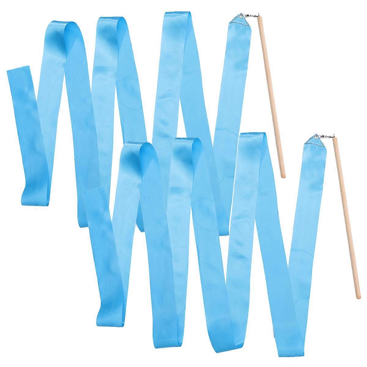 2Pcs 4m Colorful Rhythmic Gymnastics Ribbon Dancing Gymnastics Ribbon Dancing Streamers for Kids Children (Blue)