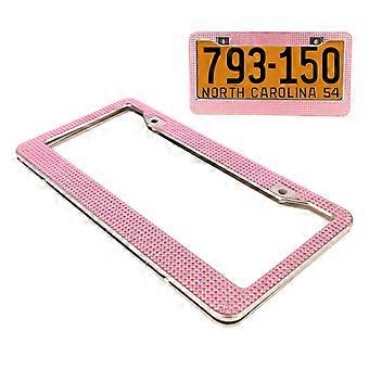 2pcs Bling License Plate Frame Covers License Plate Holder for Women with Pink Rhinestone