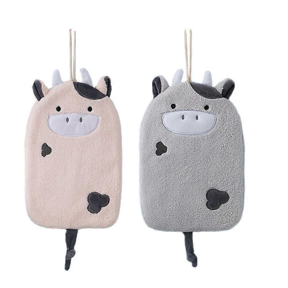2PCS Cartoon Small Cow Hand Towels Water-absorbent Dish Towels Decor (Pink+Grey)