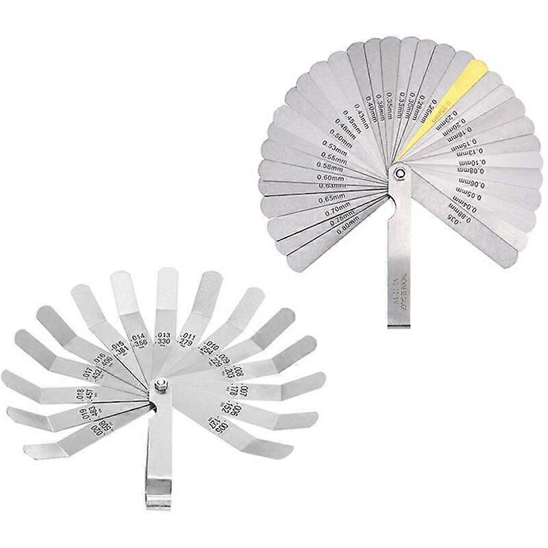 2pcs Feeler Gauge Shim Set 32 Imperial Metric Blades and 16 Manganese Steel Feeler Gauge Blades for Accurate Thickness Interval Measurement -