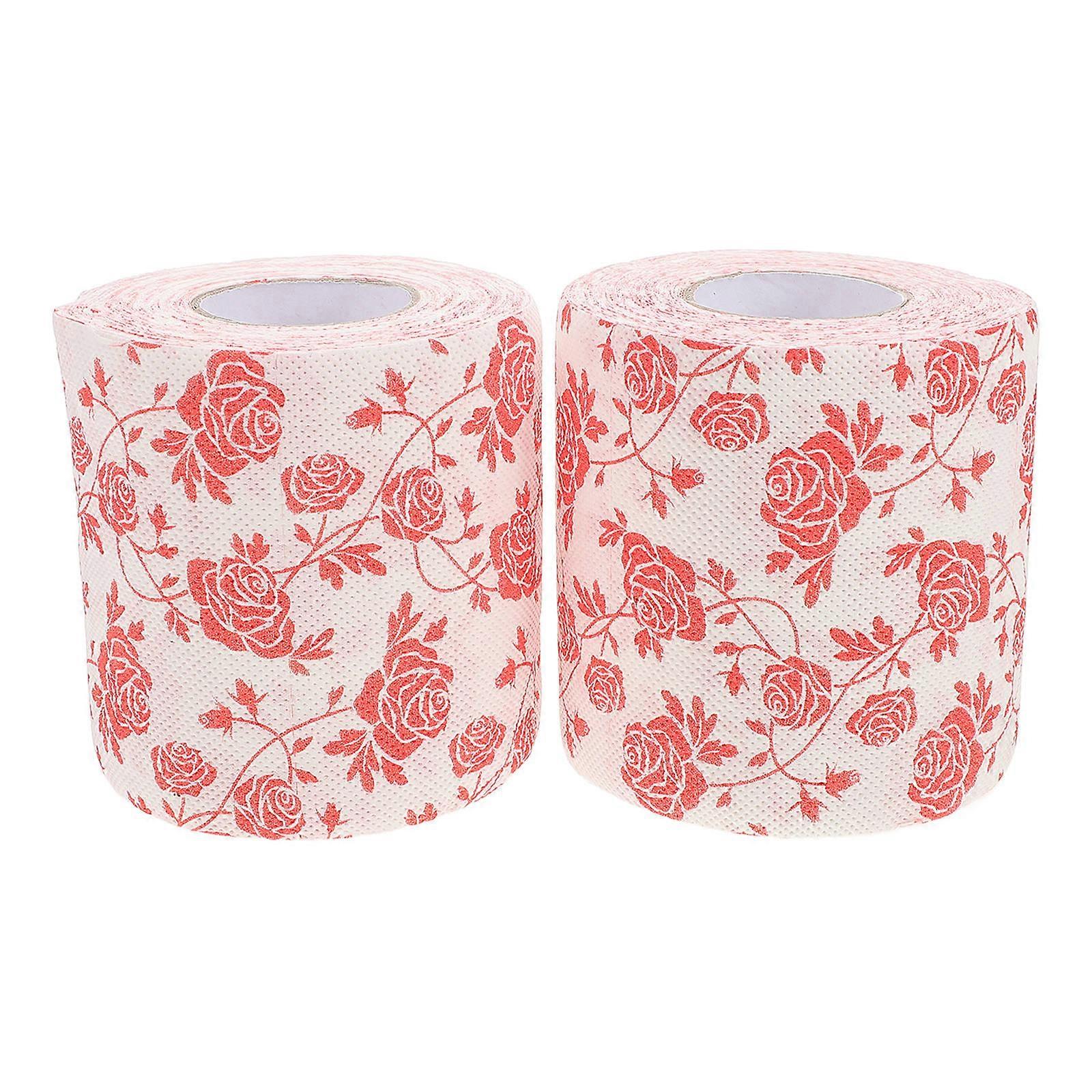 2pcs Floral Toilet Paper Rolls with Rose Printing for Bathroom Decor Napkins Ideal for Weddings and Holiday Celebrations