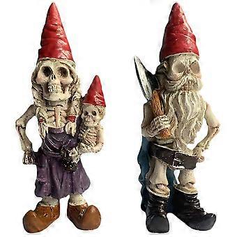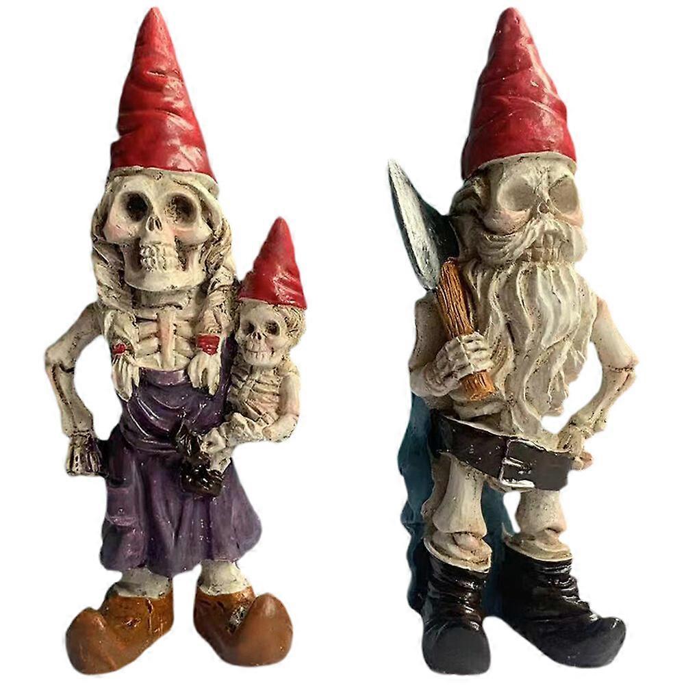2pcs Halloween Garden Gnome Resin Statue Skeleton Gnomes Bonsai Decoration Resin Skeleton Decoration