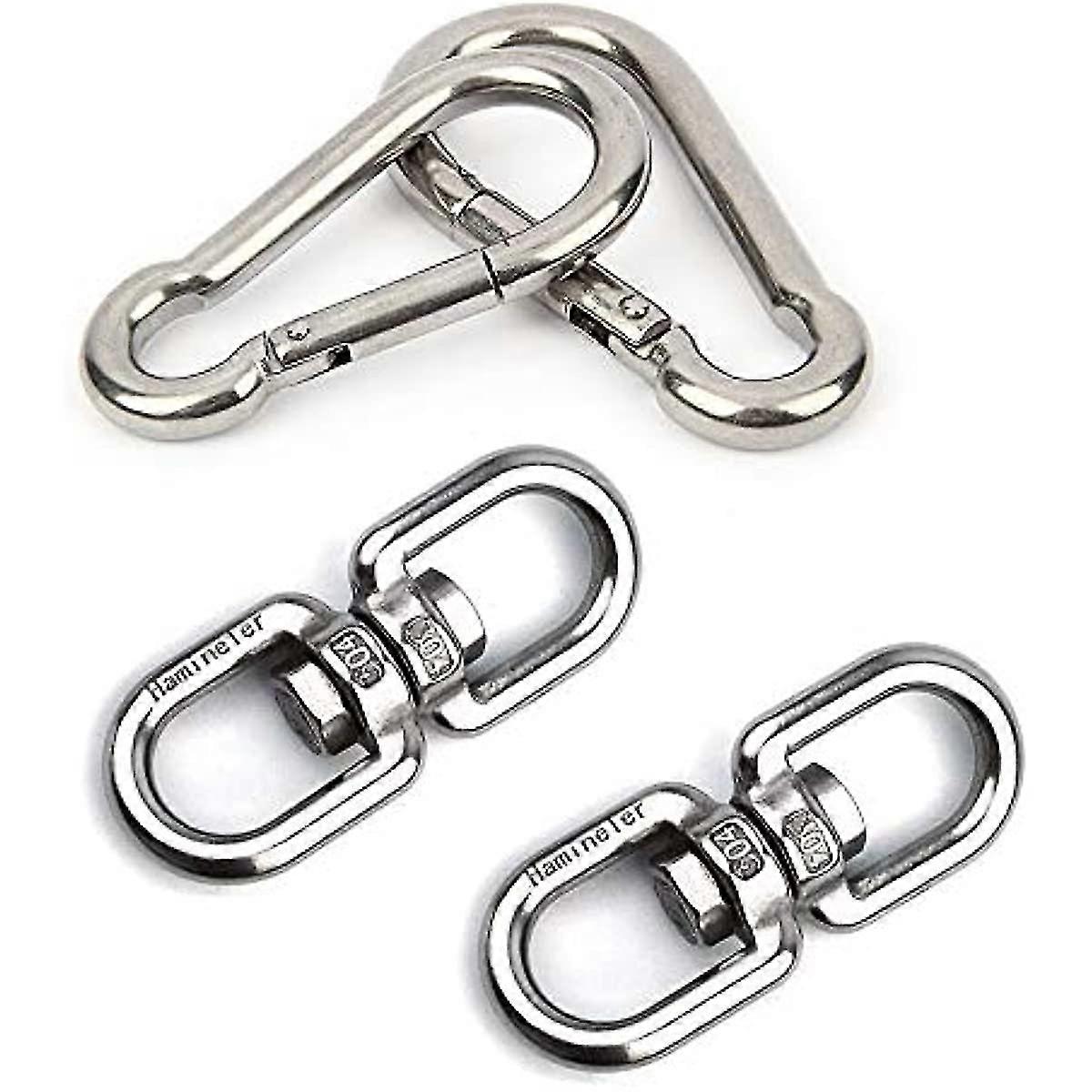 2pcs M8 304 Stainless Steel Swivel Ring Double Ended Swivel Eye Hook 2pcs M8 Carabiner Chain Connector For Marine Mooring Swivel Tree Swing Hanging