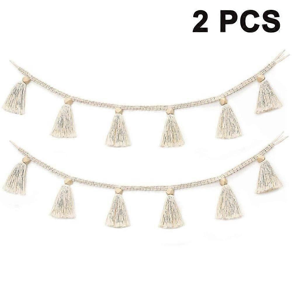 2pcs Macrame Wall Hanging Tapestry Fringe Garland Banner Cotton Woven Wall Decoration For Boho House D
