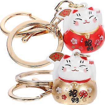 2pcs Maneki Neko Keychains Fortune Cat Backpack Accessories Cute Key Ring Charms Decorative Functional Car Keychain Stylish for Women Friends Family