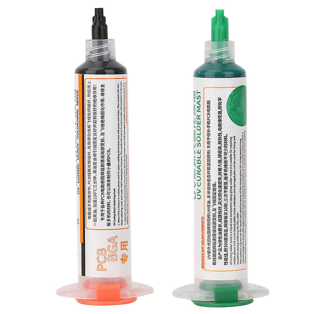 2Pcs UV Light Curing Solder Mask Ink for PCB BGA Solder Resist Black and Green UV Curing Coating Ink