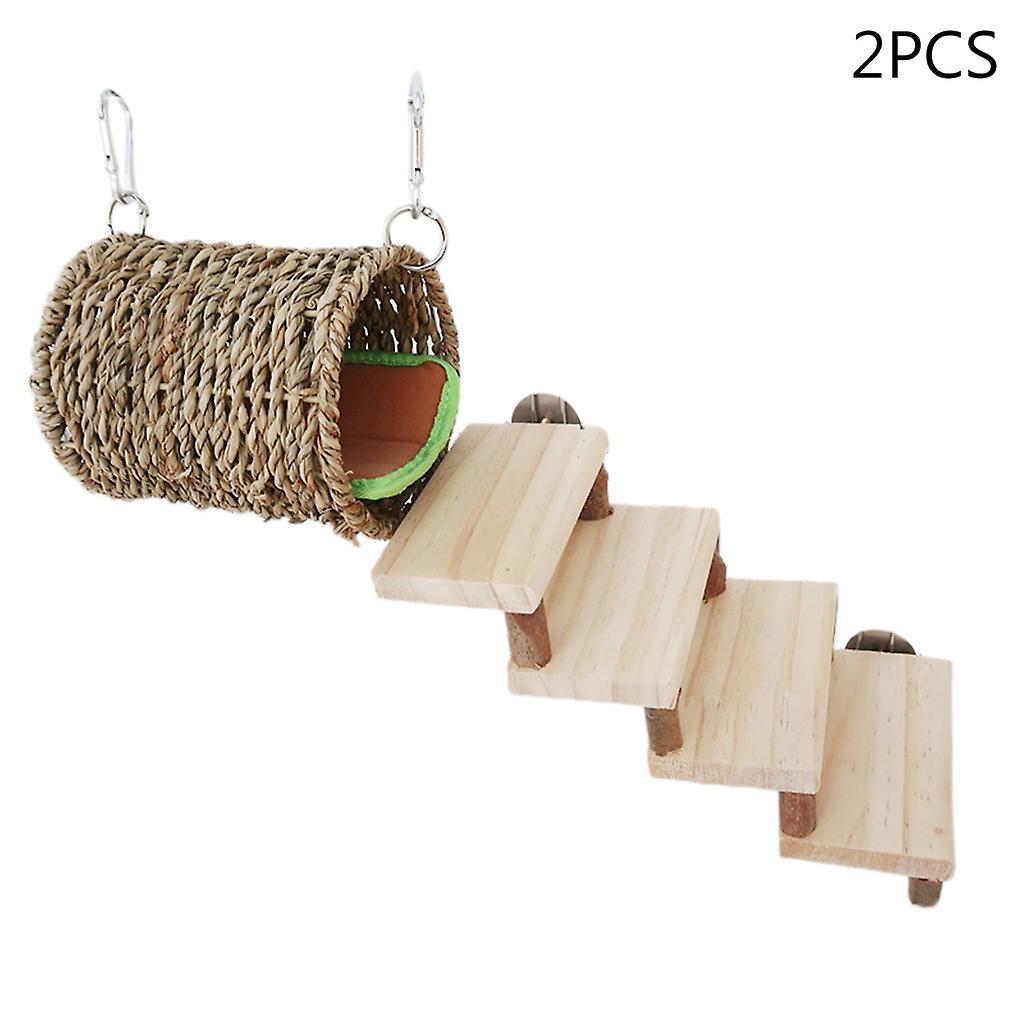2pcs Hamster Grass Woven Hammock with Ladder Bed Small Pet Cage Hideout Tunnel