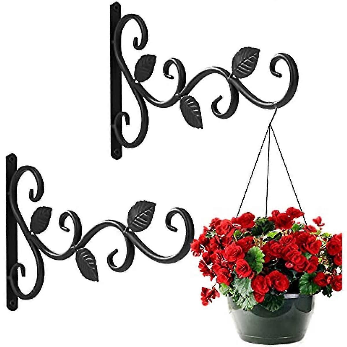 Hanging Basket Bracket - These retro iron art wall hanging planter hook is made of durable iron material with black high temperature paint finish, antirust and durable, suitable for indoor and outdoor. Beautiful & Elegant - Outdoor wall mount plant hanger with leaves patterns decor, black finish painting adding elegance and beauty to your home or garden, curved tip helps securely hold items while adding to the exquisite look. Sturdy & Durable - The balance aesthetics with vintage design, use these plant hangers for hanging baskets & plants from interiors to the outdoors, and make your space feel natural and relax. The maximum load-bearing is 11 lbs/5 kg. Easy to Install - Our Metal Plant Bracket measures 12"/30cm long, 7.48"/19cm high, 1.5cm/0.6" wide,come with 4 mounting screws. You could easy to mount it on wall, deck, fence, door for indoor or outdoor events in living room, garden, garage or balcony. Versatile Hook - 2Pcs wall mount plant brackets rack are suitable for indoor, outdoor, home, garden, patio, yard and other decoration.Perfect for haning planters, flower pots, bird feeders, lanterns, wind chimes, holiday ornaments, path string lights and so on. Decorative Wall Hanging Basket Hooks, Metal Bracket Plant Hangers Features: 1. Sturdy & Durable: Metal outdoor plant bracket is made of heavy duty wrought iron construction and black high temperature paint finish, antirust and durable. 2. Excellent Workmanships: Wall mount bracket is strong and carefully welded together, iron construction with attractive solid black color, ideal for herbs, trailing plants, salad greens and annual flowers. 3. Easy to Install: 2PCS garden hooks for plantersare included mounting screws, drill 2 hole on wall or fence, then put it on and tighten the screws. 4. Wide Usage: Beautify your home or garden by hanging bird feeders, lanterns, planters, flower pots, flower baskets, wind chimes, ornaments, candle holders, path string lights, and so on Specification: Material: Iron Color: Black Total Length: 30.5cm/12 inch Height: 19cm/7.48 inch Width: 1.5cm/0.6 inch Working Load: 11 lbs/5 kg Package:2 x Leaf-shaped Hanging Basket Bracket,4 x Mounting screws,4x Anchors Warm Tips:It is recommended to holdlight flower pots not more than 5 kg/11 lb
