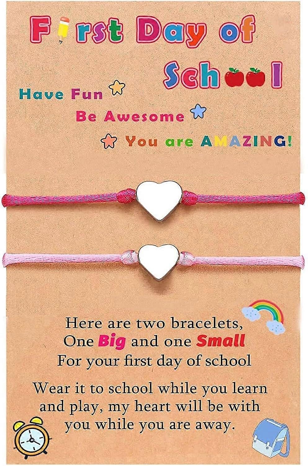 2PCS Heart Weaving Bracelet First Day of School Bracelets Girl Gift