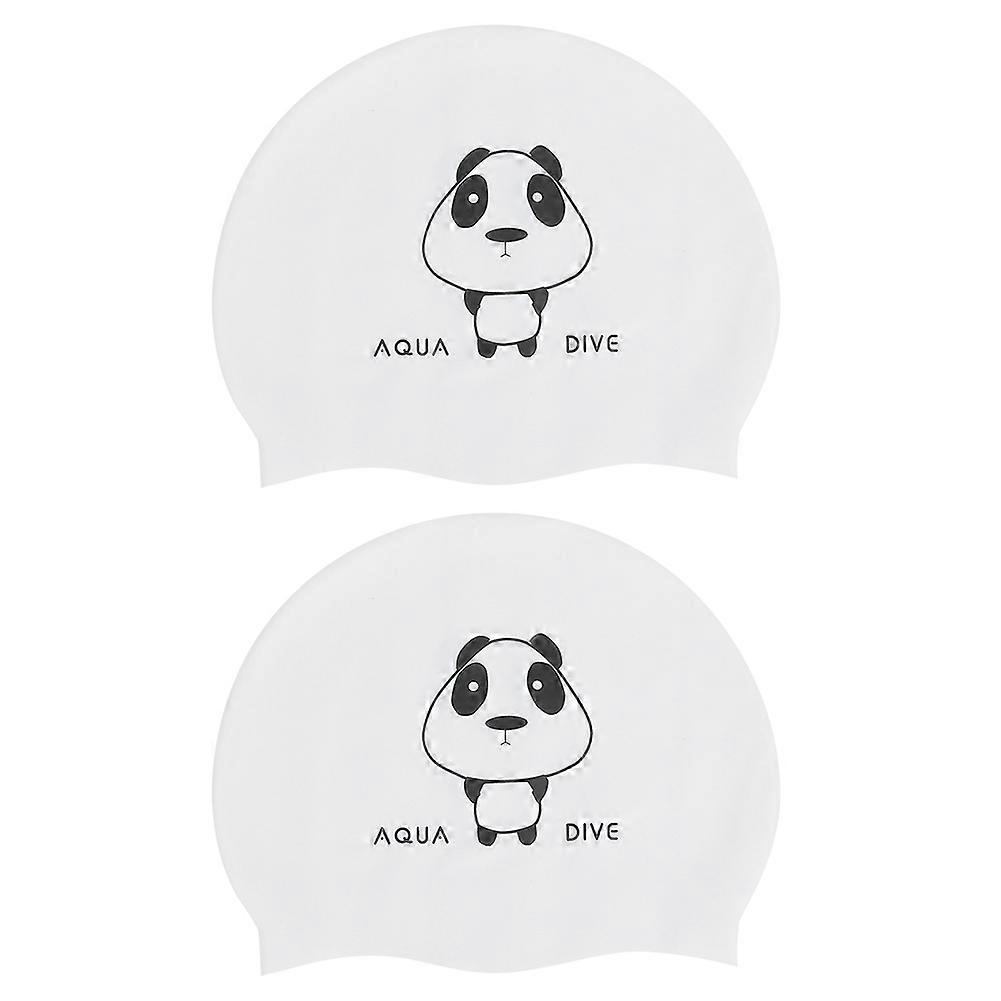 2Pcs Silicone Swimming Cap Hat Cartoon Cute Universal Type for Children Woman Man