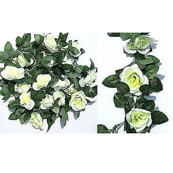 2pcsartificial Roses Garland Silk Roses Vine Faux Flower Hanging Garland With Green Leaves Fake Floral Arrangement