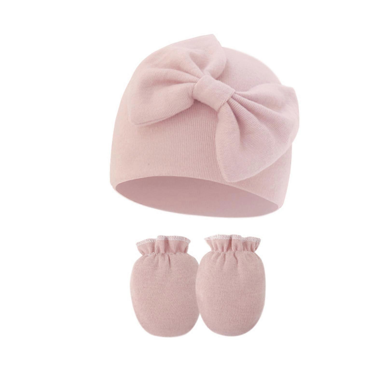 1 Set Newborn Beanies with Anti Scratch Mittens Kit Breathable Warm Bonnet Cotton Hospital Hat Babies Shower Gift Taro