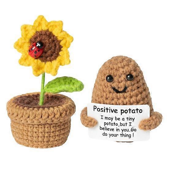 2Pcs/Set Crocheted Potted Emotional Support Sunflower Ornament Positive Potato Knitting Positive Life Vegetable Doll
