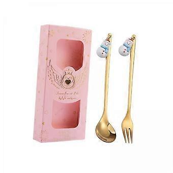 2xΧριστουγεννιάτικο κουτάλι και πιρούνι σετ Χριστουγεννιάτικα επιτραπέζια σκεύη για κέικ διακοπών χιονάνθρωπος
