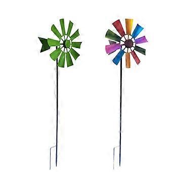 2x Wind Spinner Windmill with Metal Garden Stake Lawn Terrace Backyard Decor