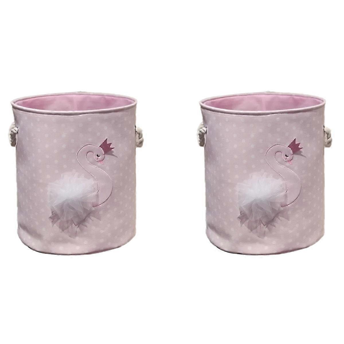 2X Dirty Laundry Basket Pink Swan Organizer Basket Drawstring Storage Baskets for Toys Books D35XH4