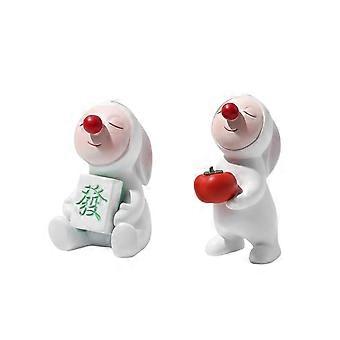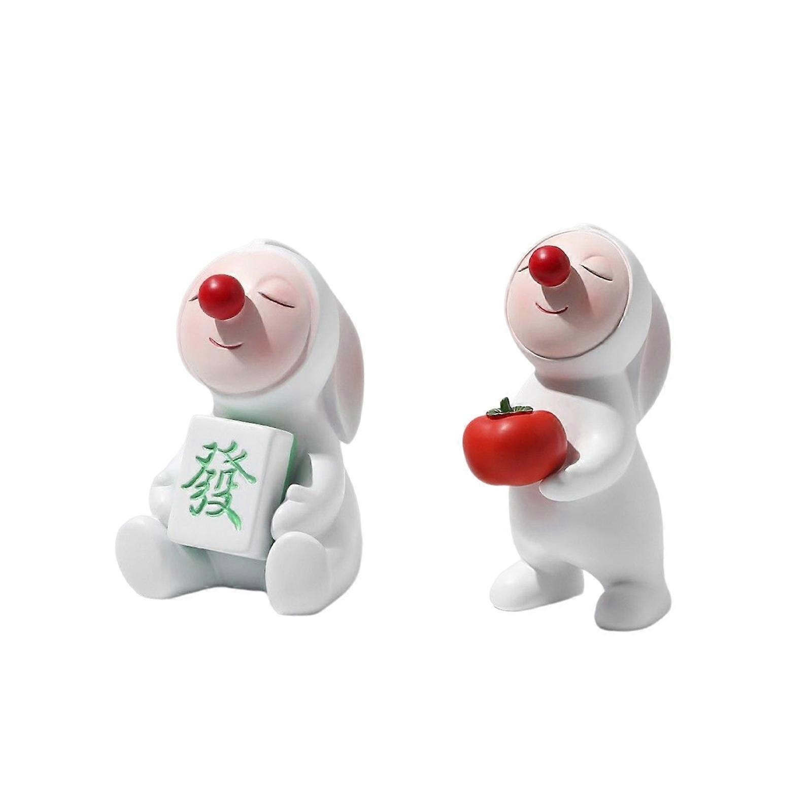 2x Bunny Figurines Red Nose Rabbit Statues for Home Easter Decoration