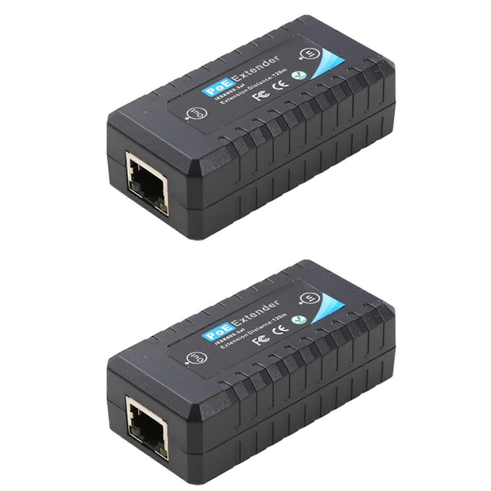 2X 1 Port POE Extender 10/100Mbps with IEEE 802.3Af Standard Input/Output for IP Camera Transmission Distance 120 Meters
