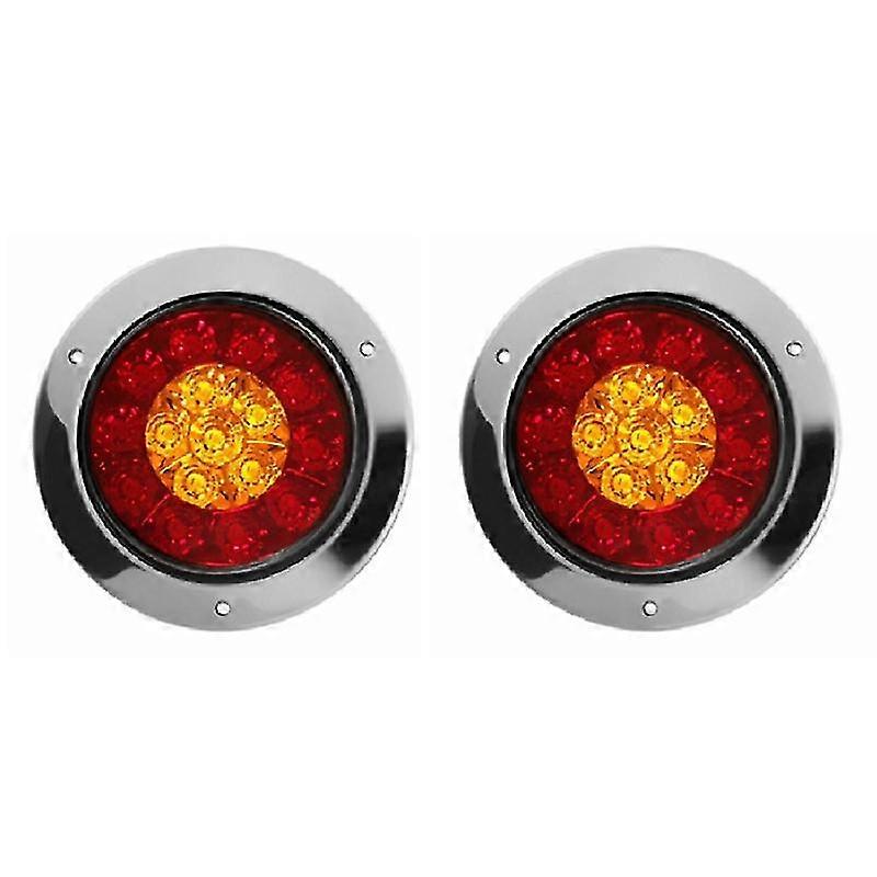 2x 16 Led Turn Signal Stop Brake Light Trailer Truck Round Taillights Side Lamp