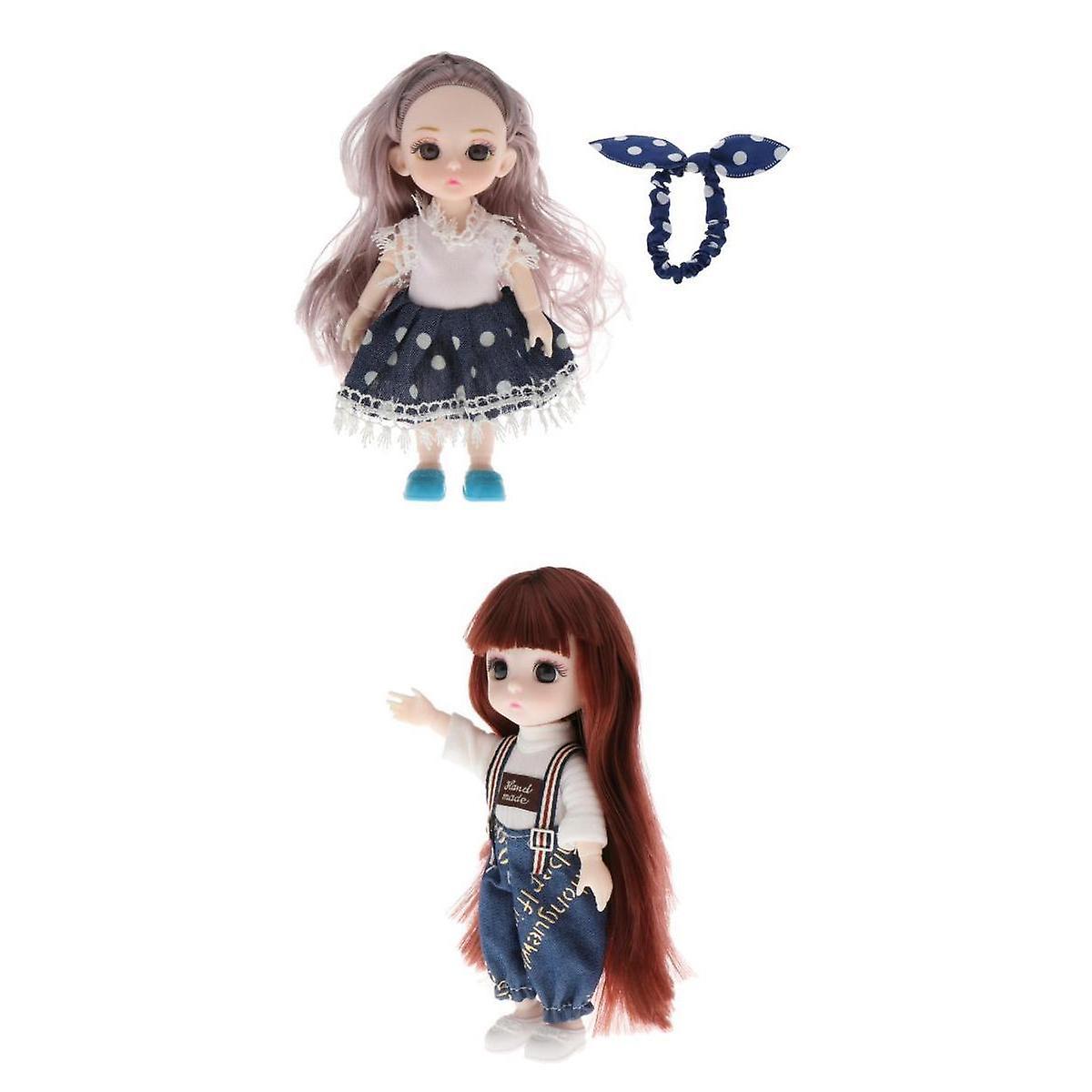 2x 16cm BJD Dolls 13 Ball Jointed Girl Eyes Face Makeup Wig Clothes Full Set