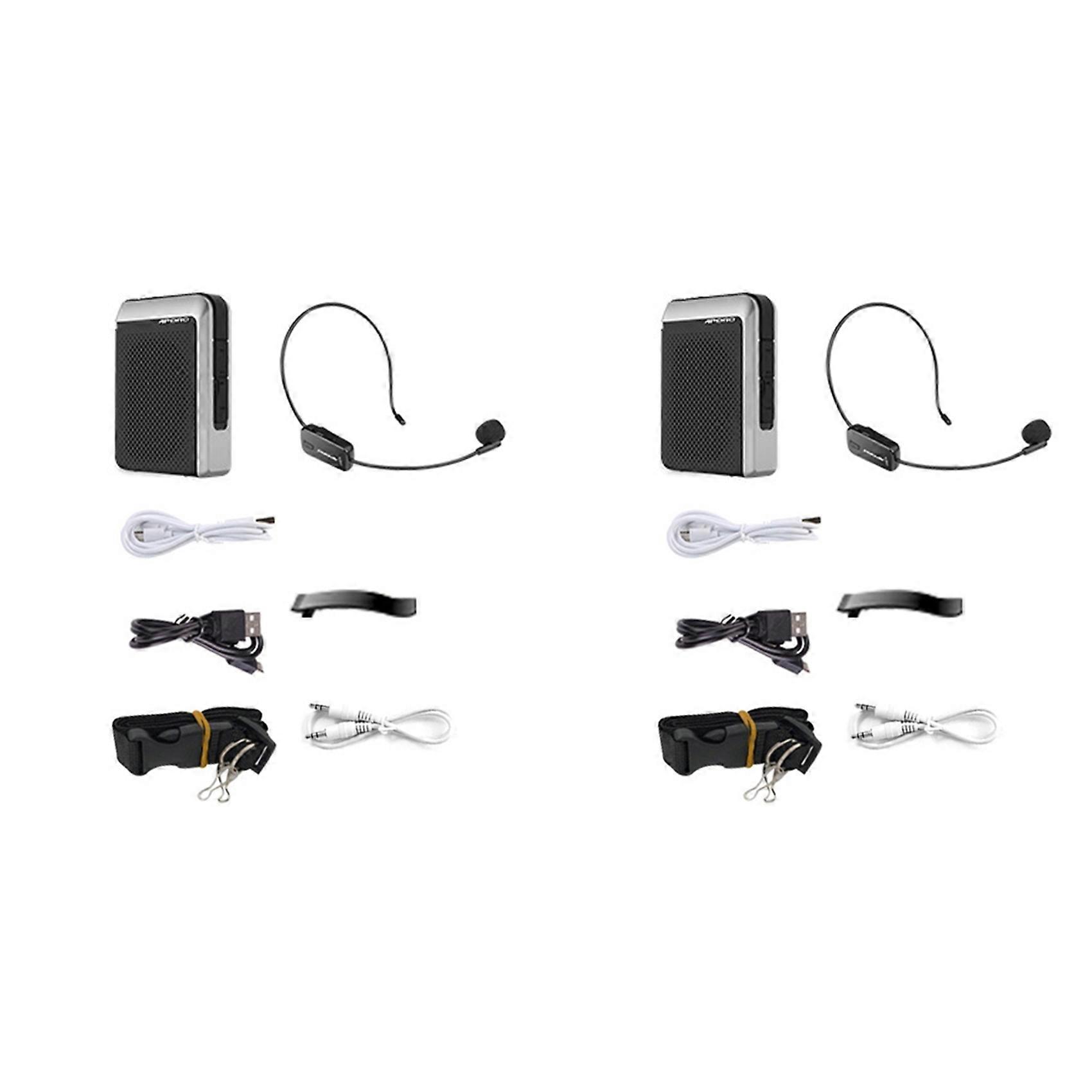2X APORO T18 Professional Loudspeaker Wireless Microphone Bluetooth Portable Speaker for Teacher School Tour Guide Black