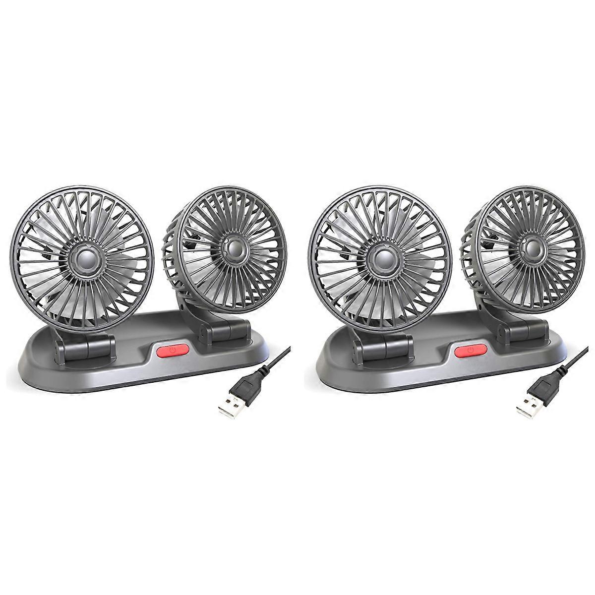 2X USB Car Fan Double Head Fan Portable Auto Cooling Fan Cooling Big Wind Electric Fan Car Folding F