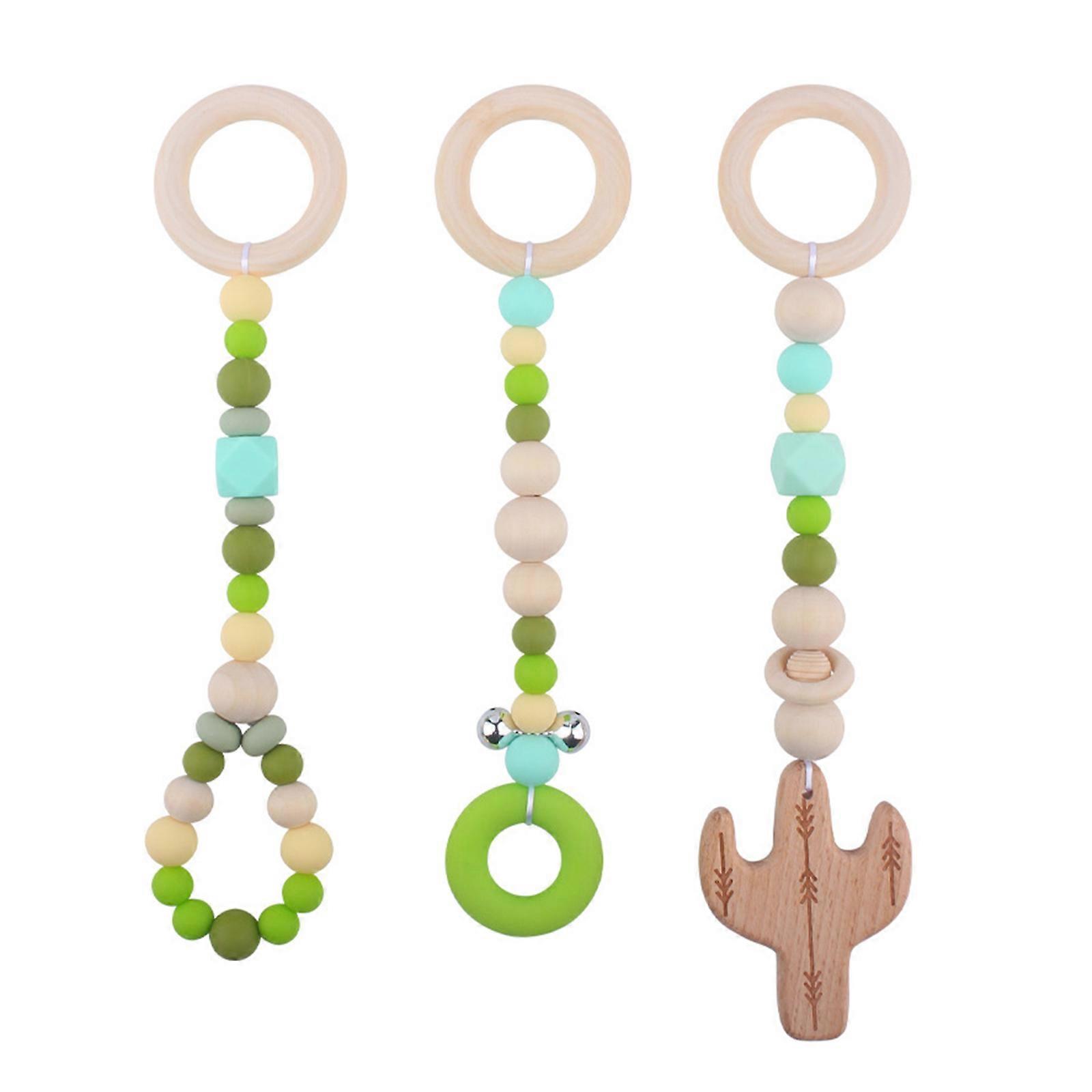 3Pcs/Set Baby Gym Frame Stroller Hanging Pendants Wooden Ring Teether Molar Teething Nursing Rattle Toys Gifts Infant Room Decor