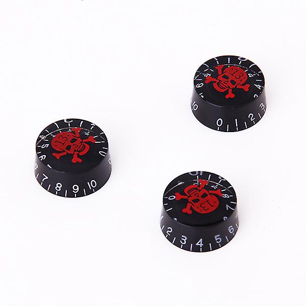 3pcs Black Speed Control Knobs for Electric Guitar w/ Red Skull Head Crossbones
