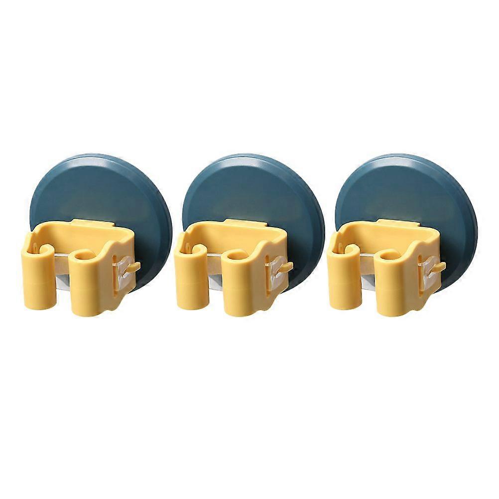 3pcs Mop and Broom Holder Wall-mounted Anti-Slip Clips Cleaning Tool Gripper (Blue and Yellow)