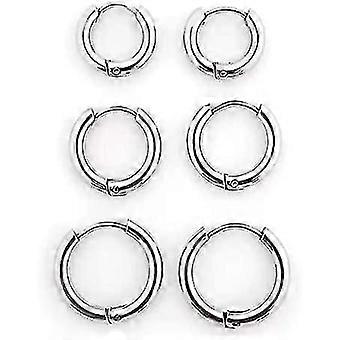 3 Pairs Titanium Stainless Steel Gold Hoop Piercing Earrings 8/10/12mm