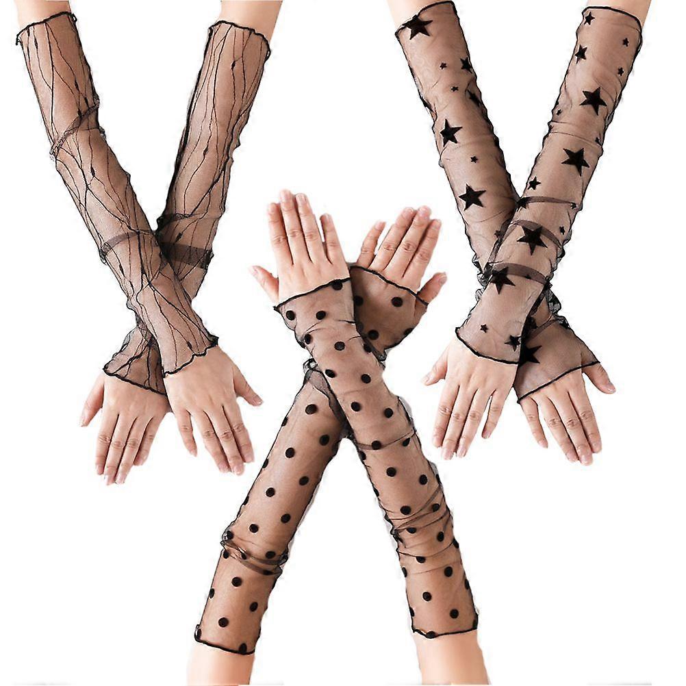 3 Pairs of Mesh Ice Sleeves Women's Summer UV Long Sleeve Riding Lace Half Finger Gloves Outdoor Sun Protection Sleeve (Black)