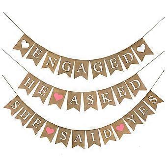 3 Pieces Engaged Burlap Banner He Asked She Said Yes Banner Rustic Bridal Shower Bunting Garland for Wedding Engagement